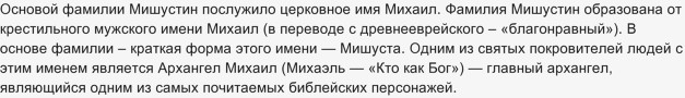 Как возникла фамилия "Мишустин"?Каково происхождение фамилии "Мишустин"?