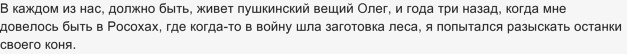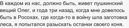 12) Вещий Олег искал могилу своего не просто коня, а друга. И главный герой, когда вернулся с войны, тоже вспомнил о преданном Карько, который когда-то кормил семью. Другие люди передали, что Карько больше нет, его не стало в последний день войны. Рассказчик искал, где может быть могила Карько, но ничего не обнаружил. Это говорит об авторе, как о человеке, неравнодушном к лошадям и привязанном к ним.