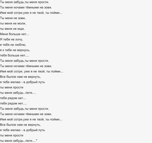Другие песни исполнителя: "Лейла", "Да, я смски тебе уже не пишу...", "Улетай", "Красивая"