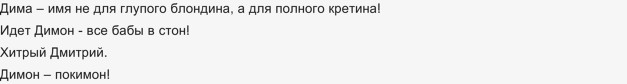Ну и хорошо, тогда дразнилки на имя Дмитрий пригодятся всем. у кого есть такой товарищ в окружении.