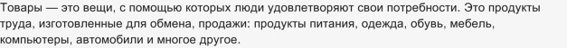 Товары - это предметы (вещи, продукты), которые можно приобрести.
