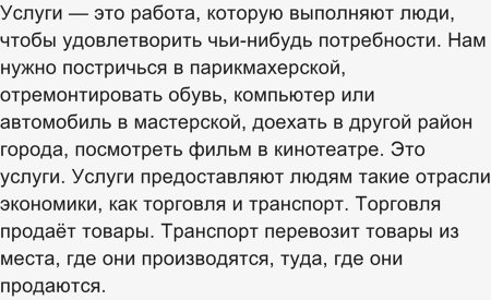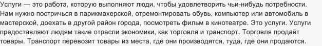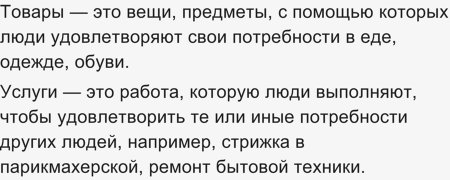 Товары - это любые вещи, которые можно приобрести, купить (и продать). Услуги - это те действия, которые оказывают люди, применяя свои навыки и уменья.