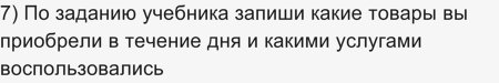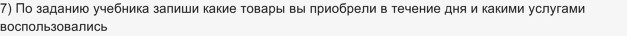 7) По заданию учебника запиши какие товары вы приобрели в течение дня и какими услугами воспользовались