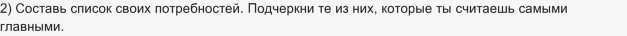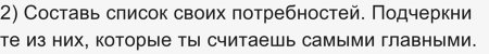 2) Составь список своих потребностей. Подчеркни те из них, которые ты считаешь самыми главными.
