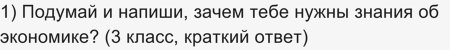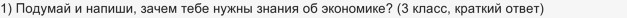 1) Подумай и напиши, зачем тебе нужны знания об экономике? (3 класс, краткий ответ)