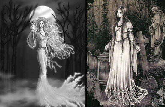 Появляется она вечером, ночью или перед самым рассветом, напоминает призрака или духа, часто способна летать (и возникает с отчетливым хлопаньем крыльев, хотя сами крылья — отсутствуют).