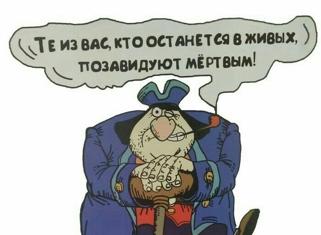 Фразу "живые будут завидовать мертвым" можно будет услышать в замечательном советском мультфильме, который называется "Остров сокровищ".