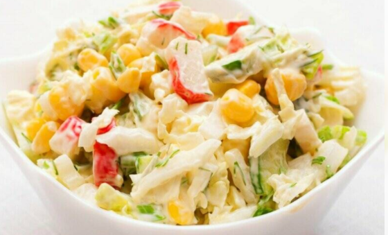 Все салаты или закуски с крабовыми палочками подаются всегда холодными.