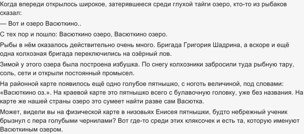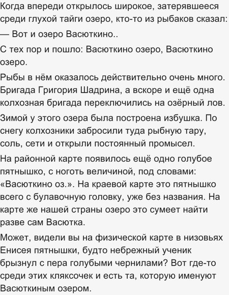 Васюткино озеро так назвали, потому что именно Васютка обнаружил озеро, в котором водилось много промысловой рыбы. А это было важно для того общества и тех людей, о которых писал Виктор Астафьев. Послевоенное время, голод, госплан, колхоз.