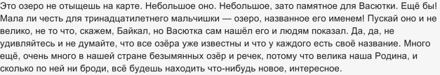Благодарные за это открытие жители назвали озеро в честь мальчика. Так появилось "Васюткино озеро".