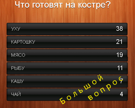 100 к 1 Что готовят на костре? Какие ответы для игры (Одноклассники, Vk)?