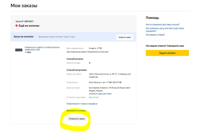 Но тут стоит обратить внимание на то, что если заказ был доставлен в пункт выдачи или он доставлен курьером, отменить его не получится. Так что отменяйте заказ вовремя.