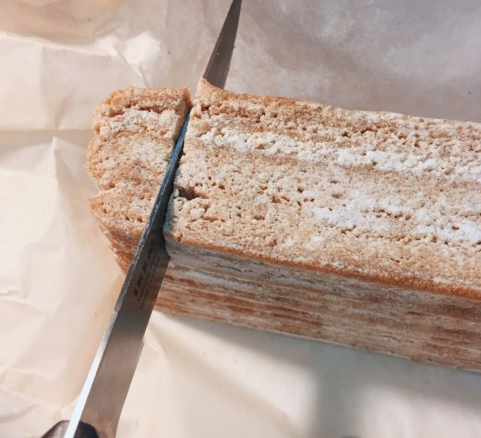 Потом я попробовала это сделать ножом-пилой, который употребляют для нарезки свежего хлеба во избежание его сминания.
