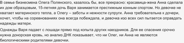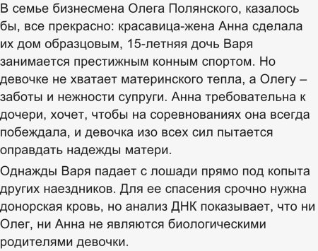 Так вот как такое стало возможным, и что в самом деле случилось уже много лет тому назад? И вообще, а смогут ли Полянские сохранить свою семью после встречи с настоящей мамой Вари и расскажет дальнейшее повествование.
