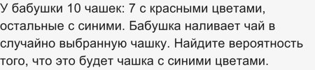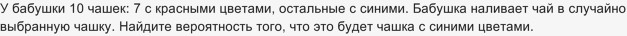 Задача ОГЭ. У бабушки 10 чашек: 7 с красными цветами. Как решить?