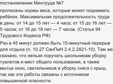Отдельные виды работ школьники вообще не могут выполнять, даже с согласия их и родителей. Так, в