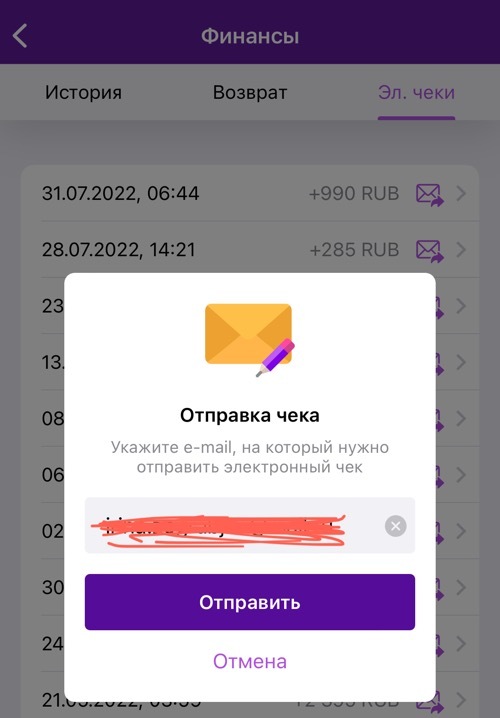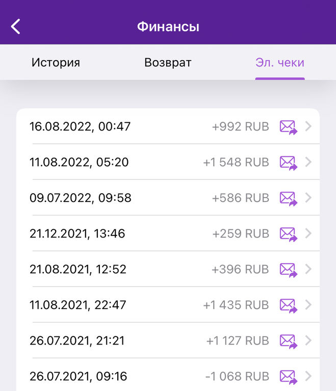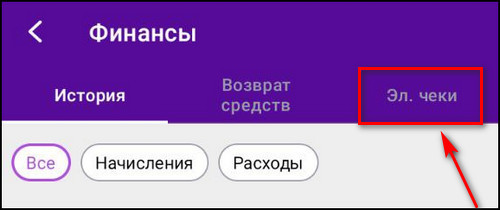 Заходим в рубрику «финансы» в мобильном приложении, а затем жмем на раздел «эл. чеки». Откроется перечень ваших заказов.