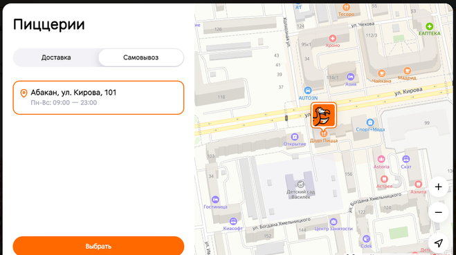 Как в Додо пицца заказать самовывоз в приложении? Как оформить, оплатить?