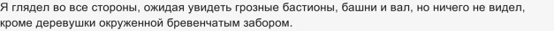 В третьей главе Гринев приезжает в Белогорскую крепость и знакомится с ее обитателями и правилами жизни в ней. Он так описывает первое впечатление: