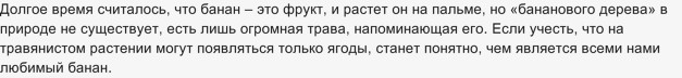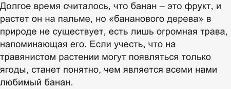 Долгое время мне казалось, что ягод бывают маленькими и найти их можно только присев на корточки. Поэтому тот факт, что банан является на самом деле совсем не фруктом, долго не укладывался в голове.