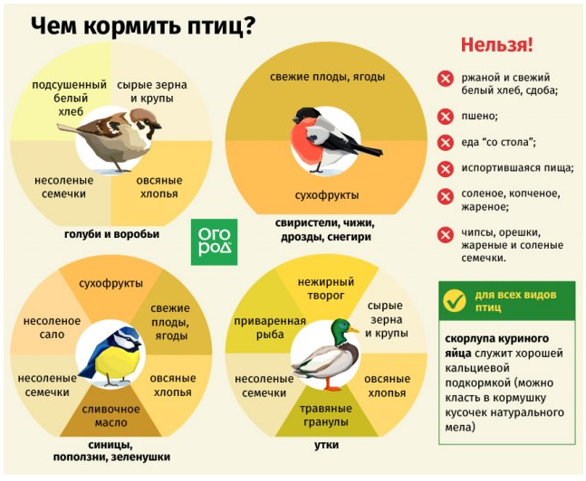 Чем вредно кормить голубей, зимой и летом? Какой корм будет полезен голубям, и другим лесным птичкам?