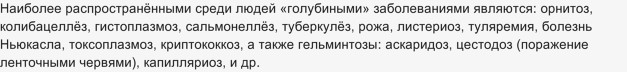 зараза. Куча болезней, которые переносят голуби, опасны для людей.