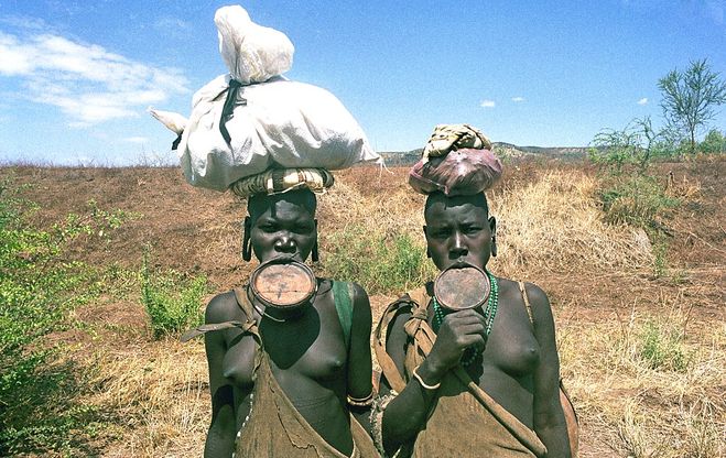 Женщины племени мурси известны тем, что в нижнюю свою губу они вставляют различные предметы круглой формы. Из-за чего, нижняя губа у них может достигать очень больших размеров.