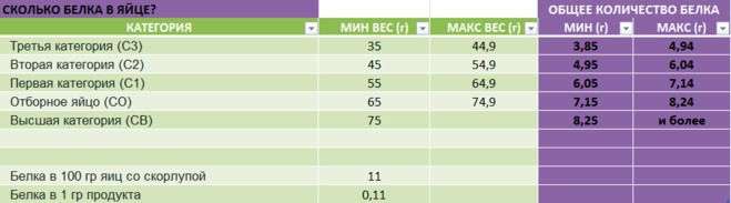 Это средний вес яиц для каждой категории, на скорлупу приходится в среднем 11% от веса яйца.