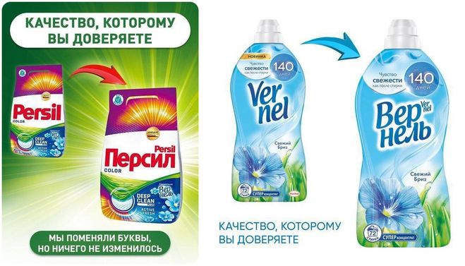 Но компания Henkel, которая выпускает разные средства по уходу, в том числе, и "FA", решила проблему иначе. Зачем что-то придумывать, когда можно писать кириллицей? Таким образом "FA" превратилась в "ФА", "Vernel" в "Вернель", "Persil" в "Персил", "Schauma" в "Шаума" и так далее.