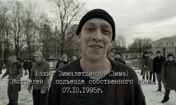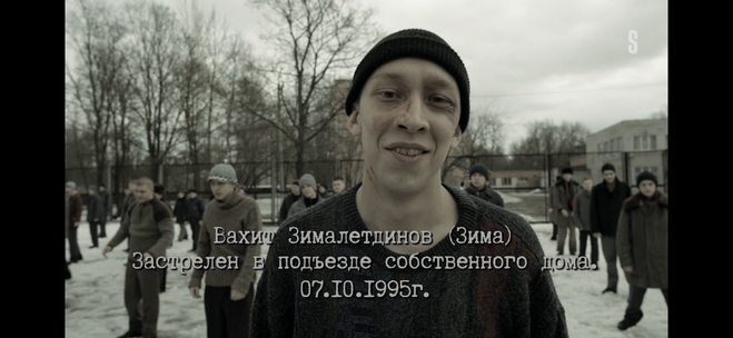 И внезапно зрители видят стоп-кадры с надписями - как зовут, когда и как был убит парень. Среди них попался и Зима. Судя по пояснению, парня убили в 1995 году в своем подъезде.