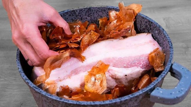 Луковая шелуха придает готовому салу характерный цвет, будто оно копченое, а также сало приобретает сливочный вкус. Существует множество вариаций рецепта варки сала в луковой шелухе.