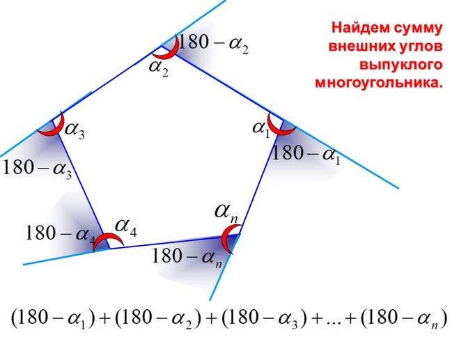 Как найти градусную меру внешнего и внутреннего углов 22-угольника?