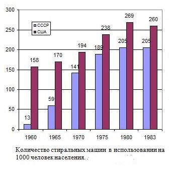 Специально для тех, что думает, будто бы одной из заслуг Советской власти в последние годы существования СССР было достижение превосходства перед США по количество стиральных машин провожу вот такую диаграмму: