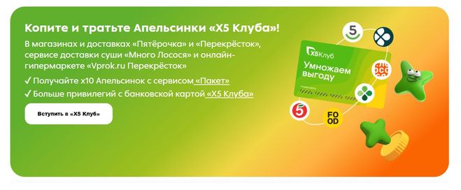 Чтобы получать апельсинки в магазине надо скачать мобильное приложение и стать участником программы X5 Клуб.