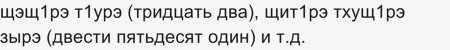 Как будут числительные на кабардинском языке?1, 2, 3, 5 по-кабардински как?