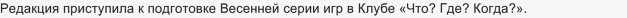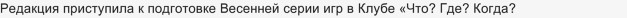 Зима закончилась и уже хочется начала "Весенней серии игр". Тем более, что на сайте "Что где когда" есть объявление