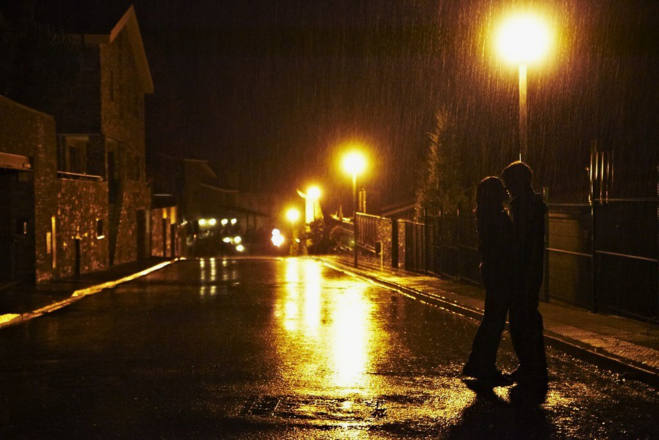 • Дождь — это повод для объятий! Греемся под фонарем и делимся теплом!
