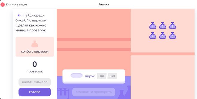 Учи.ру "Наука вокруг нас". Как найти среди 6 колб 1 с вирусом?