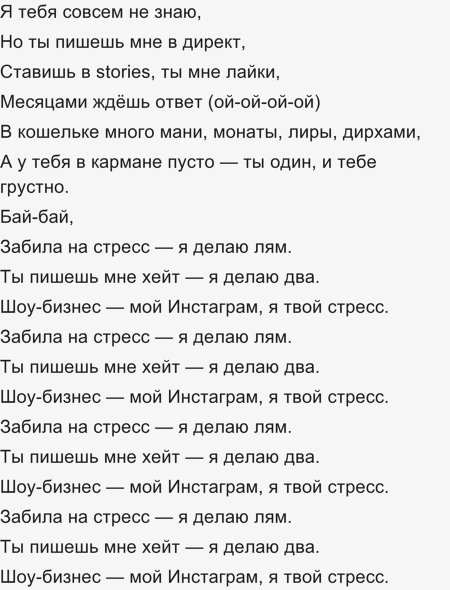 "Забила на стресс, я делаю лям", кто поет, что за песня, какой текст?