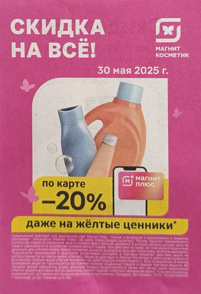 Магнит Косметик:будет ли скидка 20% на все 30.05.2025?