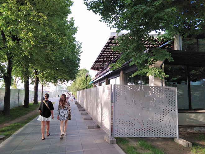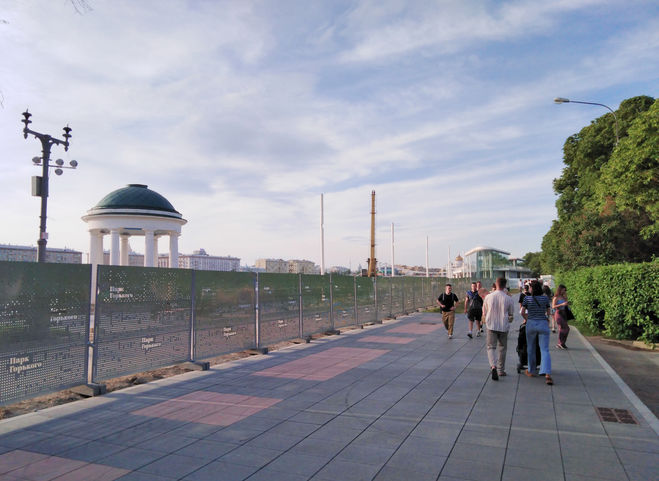 Романтические советские беседки над водами Москвы-реки остались за заборами, вне досягаемости. Зато теперь на набережной угадываются контуры будущих построек.