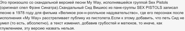 Иногда мы даже не догадываемся, что полюбившаяся нам песня на самом деле не совсем является собственным продуктом исполнившего ее музыканта. То есть какому-то исполнителю понравилась чья-то песня и он исполнил ее, но исполнил по-своему, в своей манере, обычно сохранив при этом первоначальный текст и некоторые музыкальные особенности. Такую композицию обычно называют английским словом "кавер". Например, известная песня американской рок-группы Limp Bizkit Behind Blue Eyes на самом деле является перепевкой или кавером одноименной композиции британских рокеров The Who.