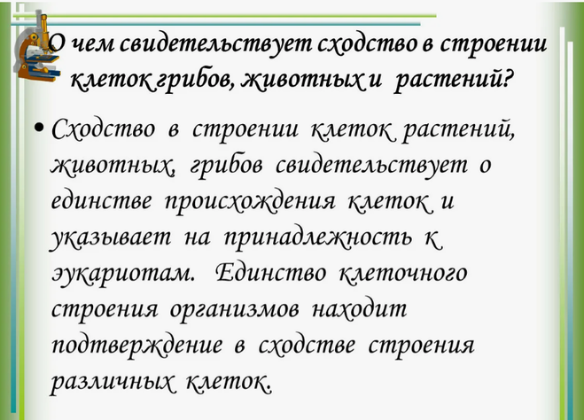 О чём говорит сходство строения клеток растений, животных и человека?