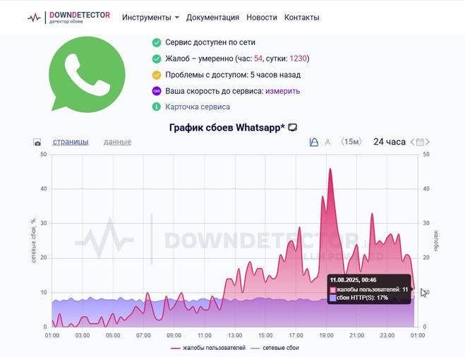 WhatsApp на 11 августа 2025 года у меня лично работает в своем штатном режиме и сообщения как можно отправить, так и входящие сообщения также поступают в мой адрес.