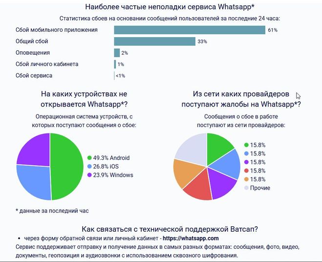 Возможно данные жалобы возникли в следствии технических неисправностей на серверах мессенджера WhatsApp.