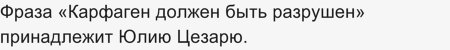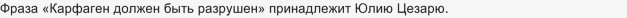 Фраза «Карфаген должен быть разрушен» принадлежит Юлию Цезарю.