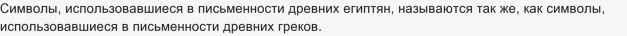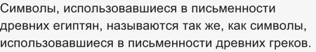 Символы, использовавшиеся в письменности древних египтян, называются так же, как символы, использовавшиеся в письменности древних греков.