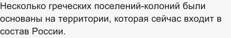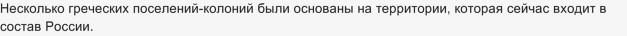 Несколько греческих поселений-колоний были основаны на территории, которая сейчас входит в состав России.
