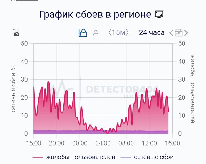 За сутки пришло на сервис статистики сбоев Downdetector более 1200 жалоб и график сбоев подтверждает возникшие проблемы: