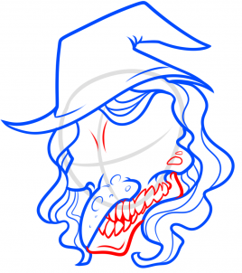 По схеме номер три мы начинаем добавлять детали в рисунок и у нас уже прорисовыется эдакая страшненькая старушенция.